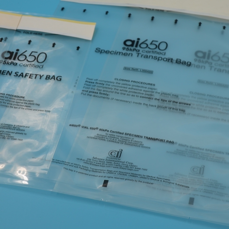 7 スロット吸収性ポケット付き透明バッグ AI 650 95kpa カスタムジップロック生分解性医療輸送バイオハザード検体バッグ